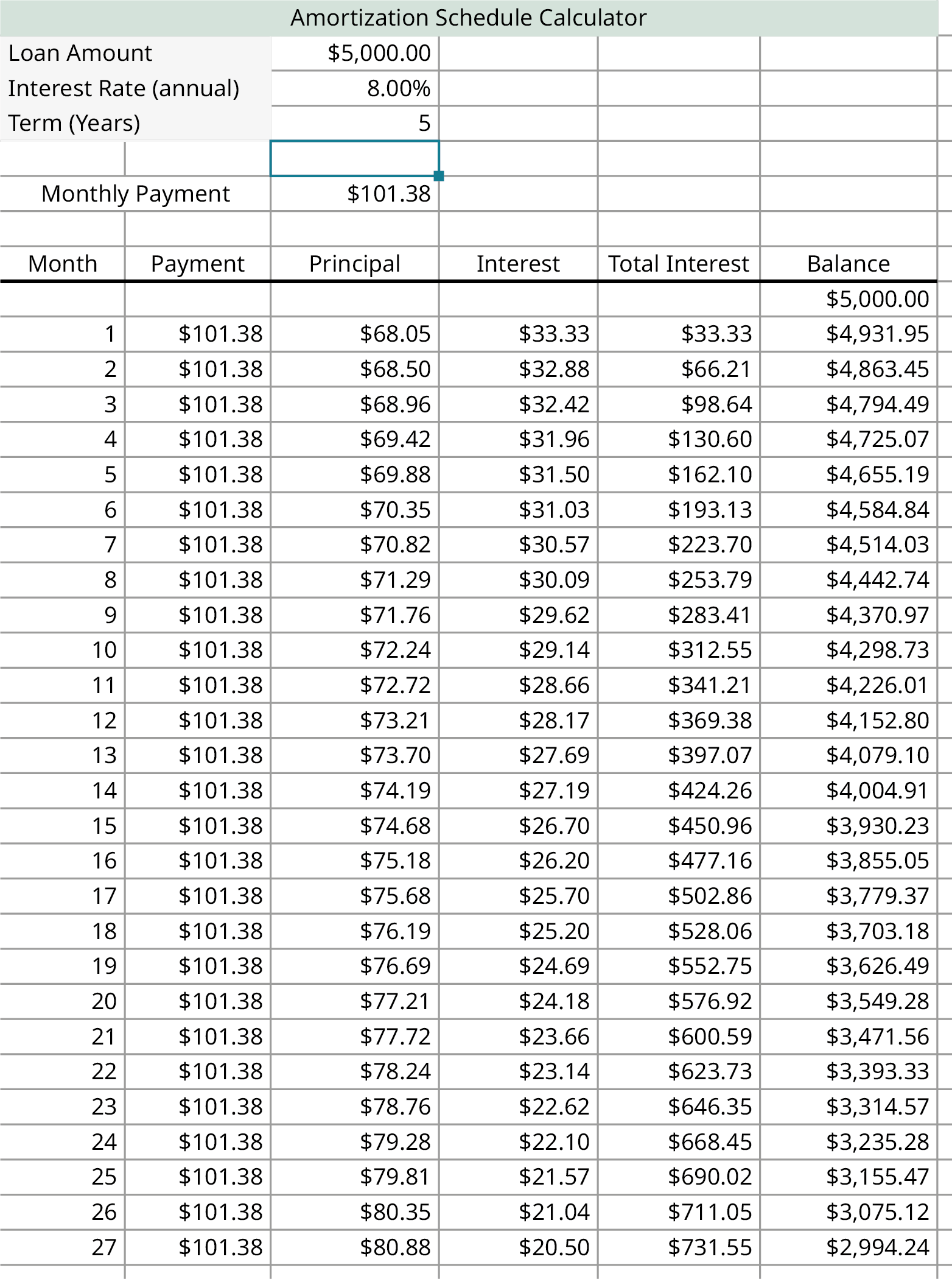 Loan amortization is the process used to calculate how much of each payment will be applied to principal and how much is applied to interest.